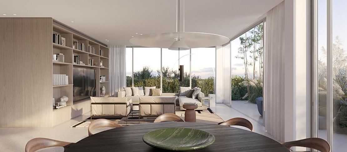 The modern kitchen features a luxurious Italian design by Dada. High-quality built-in wardrobes by Molteni (Italy) are installed throughout the living areas. The floors are finished with premium resin, and underfloor heating runs throughout the apartment. The windows are made from imported aluminum in the “Minimal” model design.
