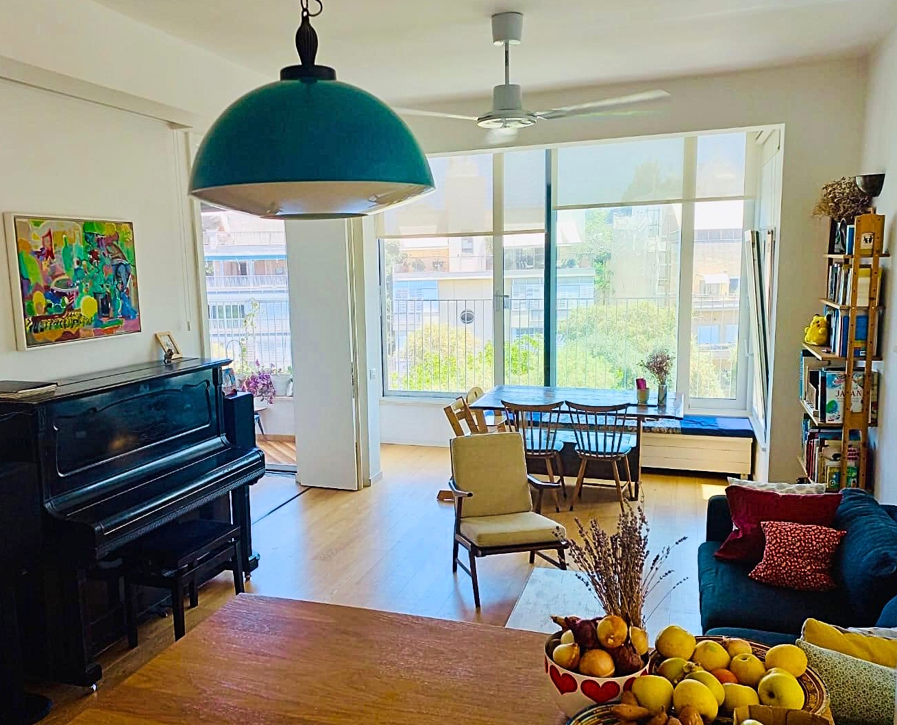On the sought-after Hisin Street, near Habima, a unique 3-room apartment is offered for sale. Fully renovated and spanning approximately 80 sqm, the apartment faces the beautiful Hisin Garden. The flooring combines genuine wood parquet with meticulously restored original tiles. It features two bathrooms and custom carpentry throughout. With three air exposures, the apartment is filled with natural light and excellent ventilation. A spacious and pleasant front balcony completes this exceptional home, located on one of the most desirable streets in the city.