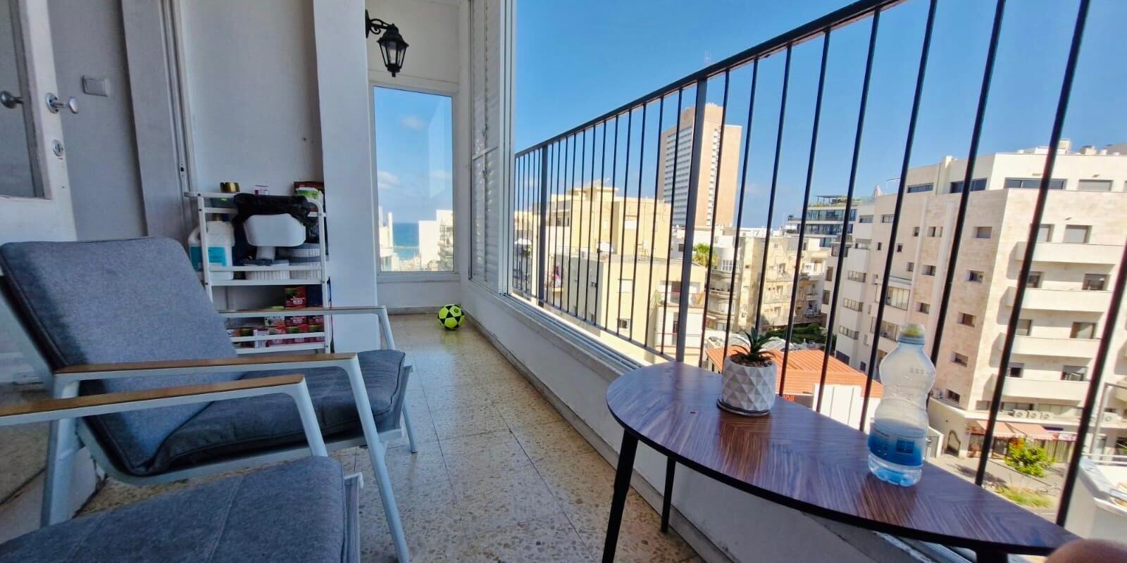On Frishman Street, just a one-minute walk from the beach, in a renovated building with a shelter, a well-kept, bright, and spacious 3-room apartment is offered for sale on the sixth floor with an elevator. The apartment spans approximately 95 sqm of built area and features three directions of air: north, west, and south, as well as a balcony with a partial sea view.