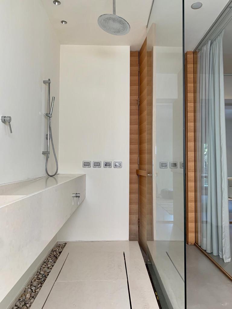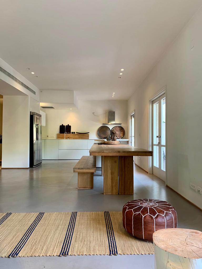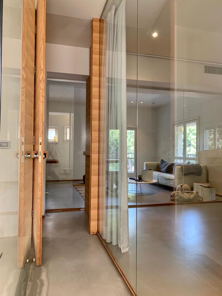 The apartment is architecturally designed in a Zen-inspired style, featuring a high-end specification and premium finishing materials throughout. It includes a large master bedroom, an additional room that serves as a Mamad (safe room), and guest bathroom facilities.