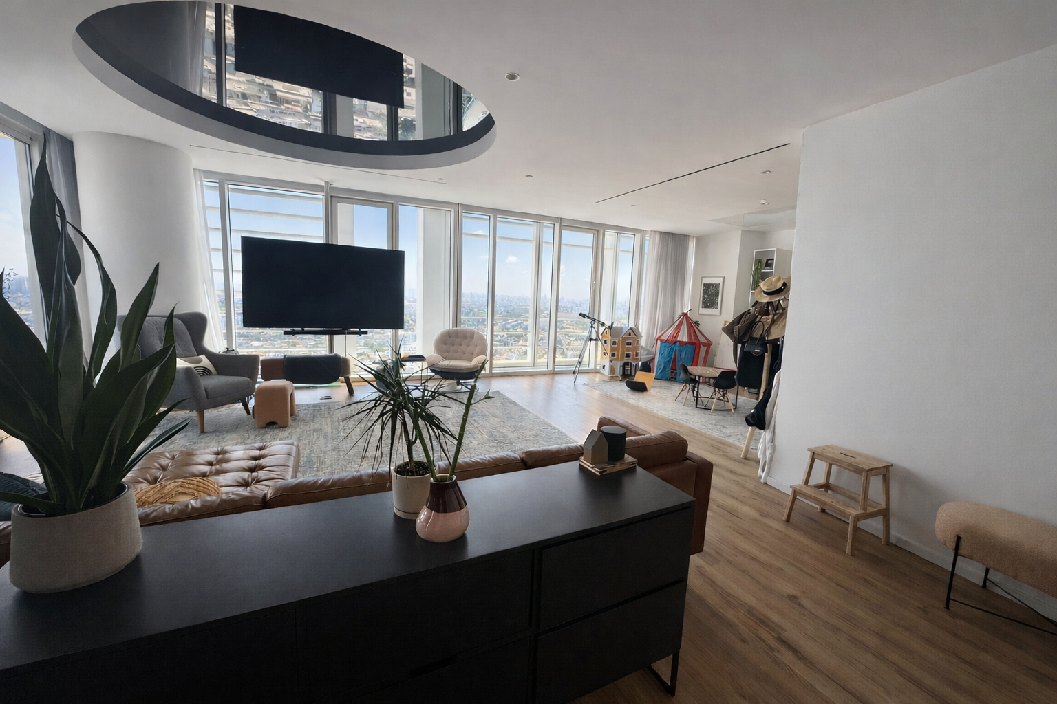 Located on one of the upper floors, with an open and impressive view.