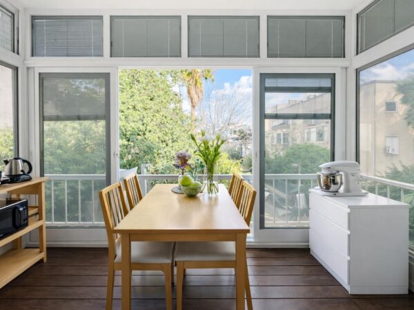 On a quiet street, just a short walk from the beach and the vibrant Bograshov Street, lies a unique, beautifully designed, and light-filled loft.