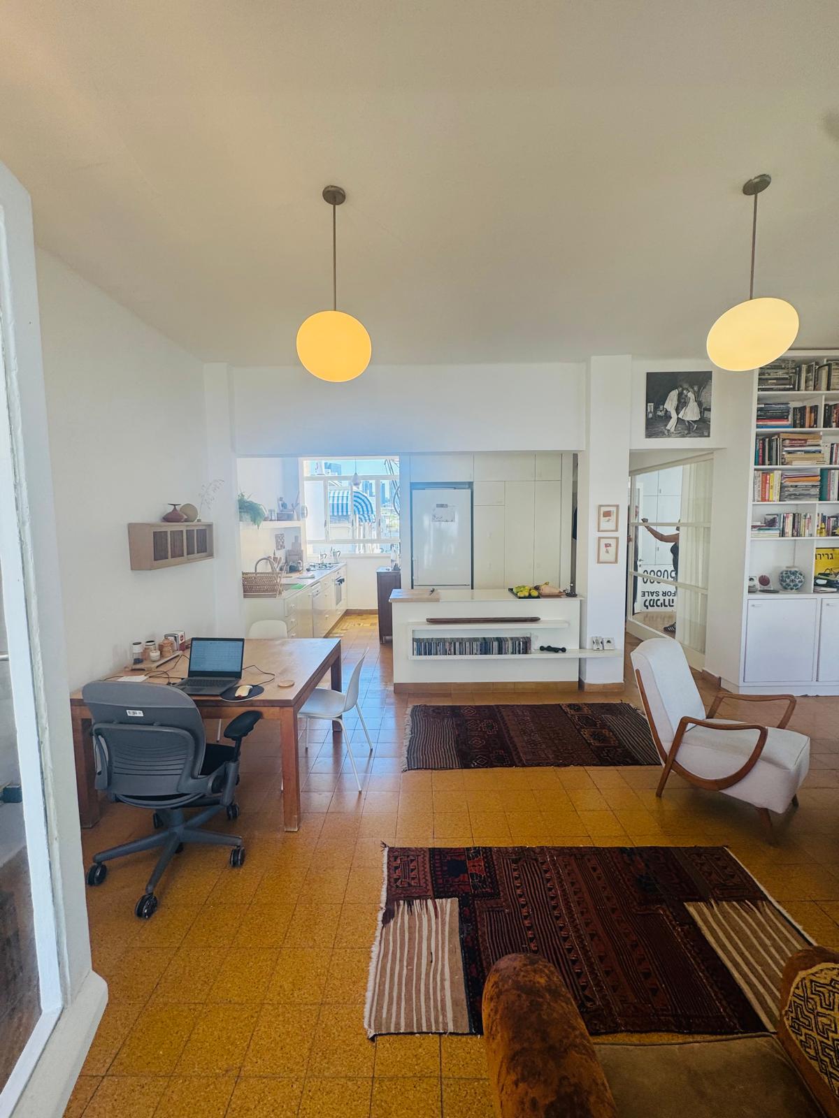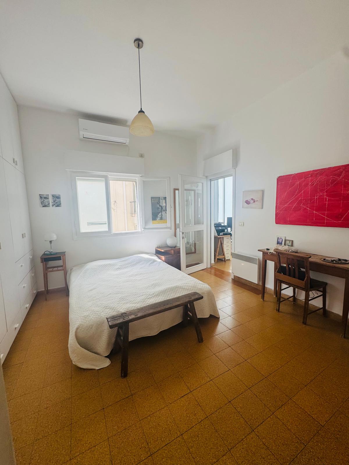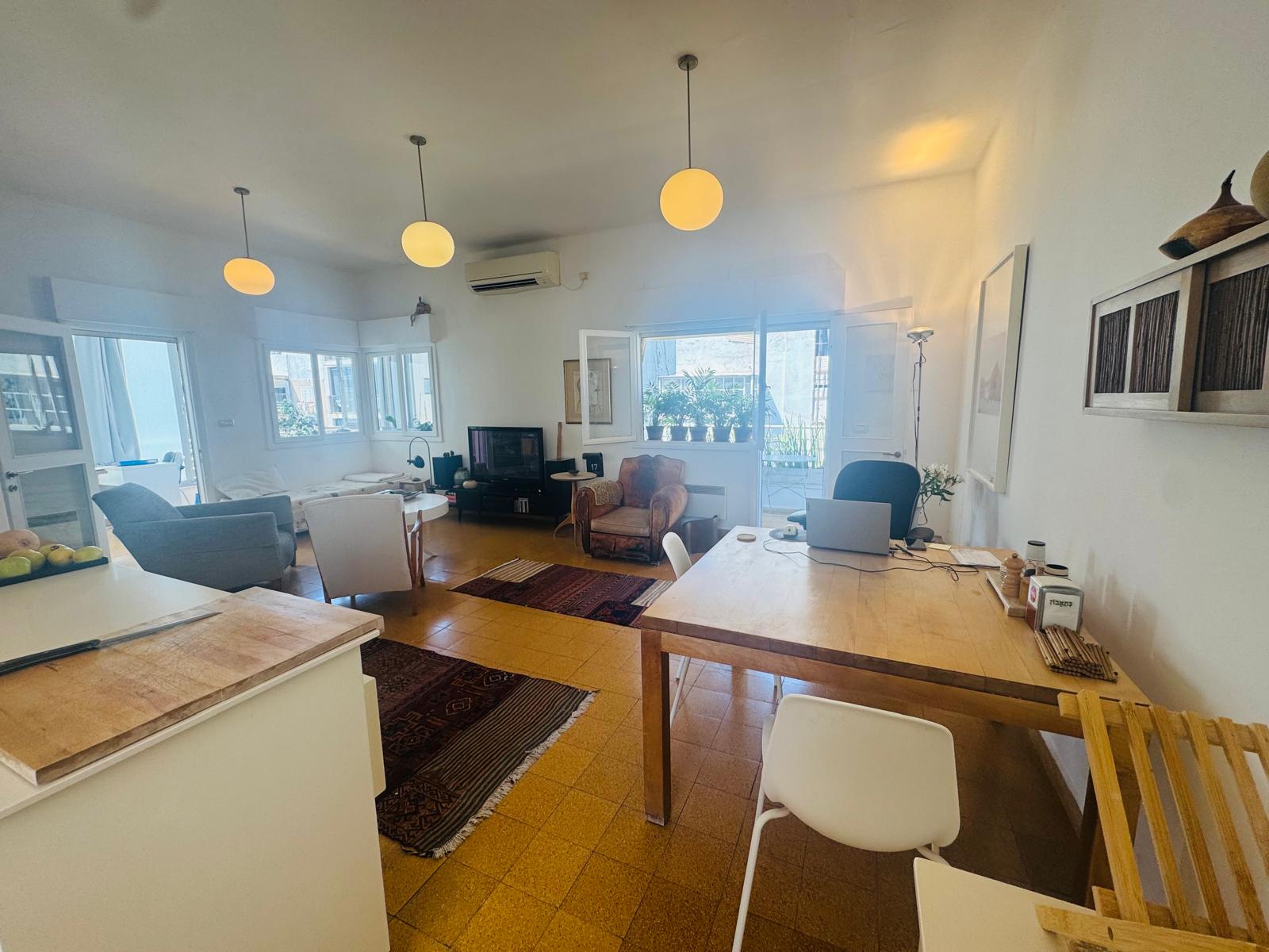In a well-maintained building on the quiet Shalom Aleichem Street, just a short walk from the sea. On the second floor, a beautifully renovated 2.5-room apartment of approximately 84 sqm. The apartment is quiet and unique, filled with natural light and pleasant airflow, featuring high ceilings and a sun balcony facing a peaceful front.