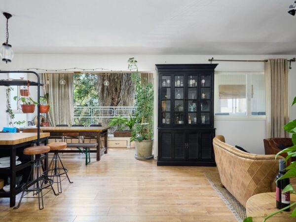 In the heart of Tel Aviv, one of the most beautiful 4 room apartments you’ll see is offered for sale. Approximately 100 sqm of built area plus a 4.5 sqm sun balcony. Exceptionally quiet and facing the rear, fully renovated from the ground up with high-end finishes and meticulous architectural design down to the last detail. Spacious interiors and high ceilings of 3.3 meters. Green views from the windows. Features include triple-layer natural oak parquet flooring, custom steel Belgian windows with oven-baked paint, and bespoke carpentry. A unique character and an exceptional living experience.