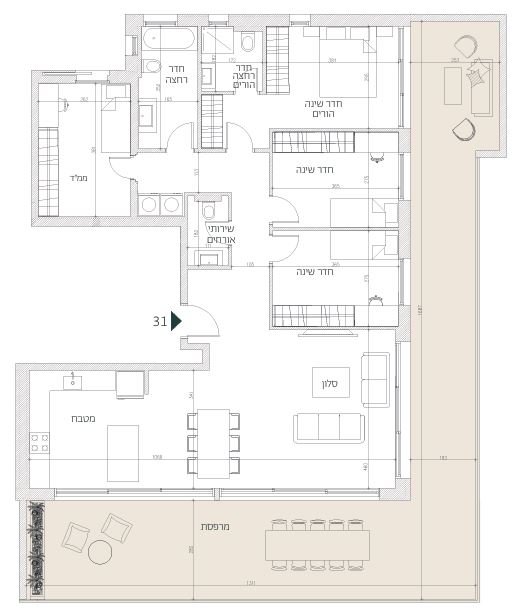 Wrap-around terrace of 72 sqm with direct views of Yarkon Park and the open landscape.