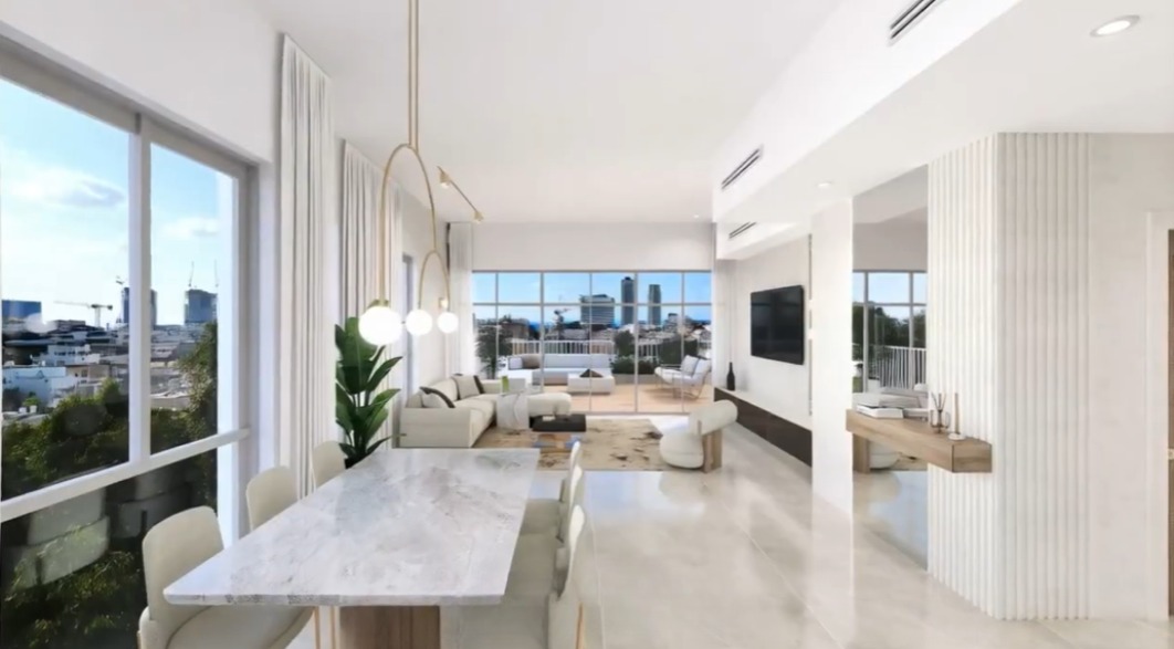 Penthouse with a swimming pool, in an advanced-stage construction project, in the heart of the White City. Located on a quiet street with open views, within walking distance to Rothschild Boulevard and cafés. Approximately 138 sqm of built area + 94 sqm of terraces on a single level with a swimming pool, unique on the floor. Includes parking space.