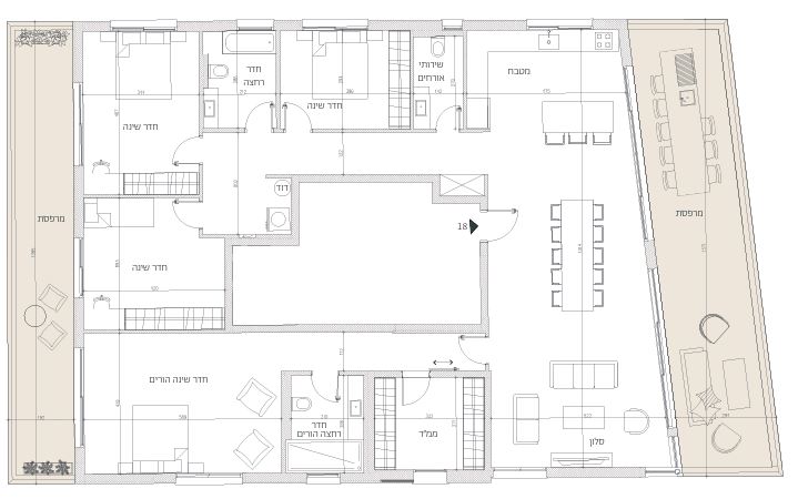 Front terrace of 40 sqm with direct views of Yarkon Park and the open landscape.