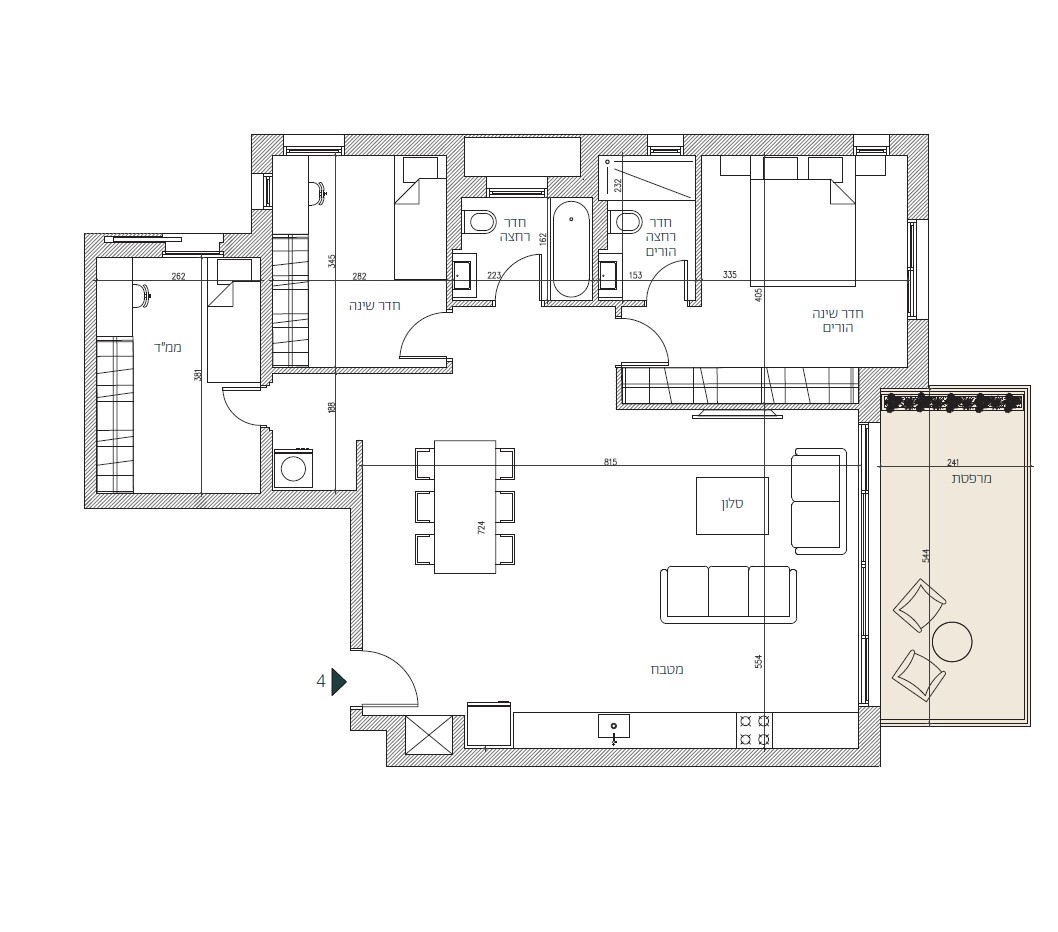 A 4-room apartment of approximately 113 sqm with a 14 sqm front-facing sun terrace overlooking the open views of the park. Includes standard underground parking.