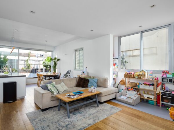 In Neve Tzedek, in a beautiful boutique building, of only 4 apartments. A 4-room apartment, 93 sqm, spacious and luxurious, 2 bathrooms. 3rd floor with accessible elevator. Architecturally renovated, bright, front-facing with an open view. Regular parking for 2 cars.