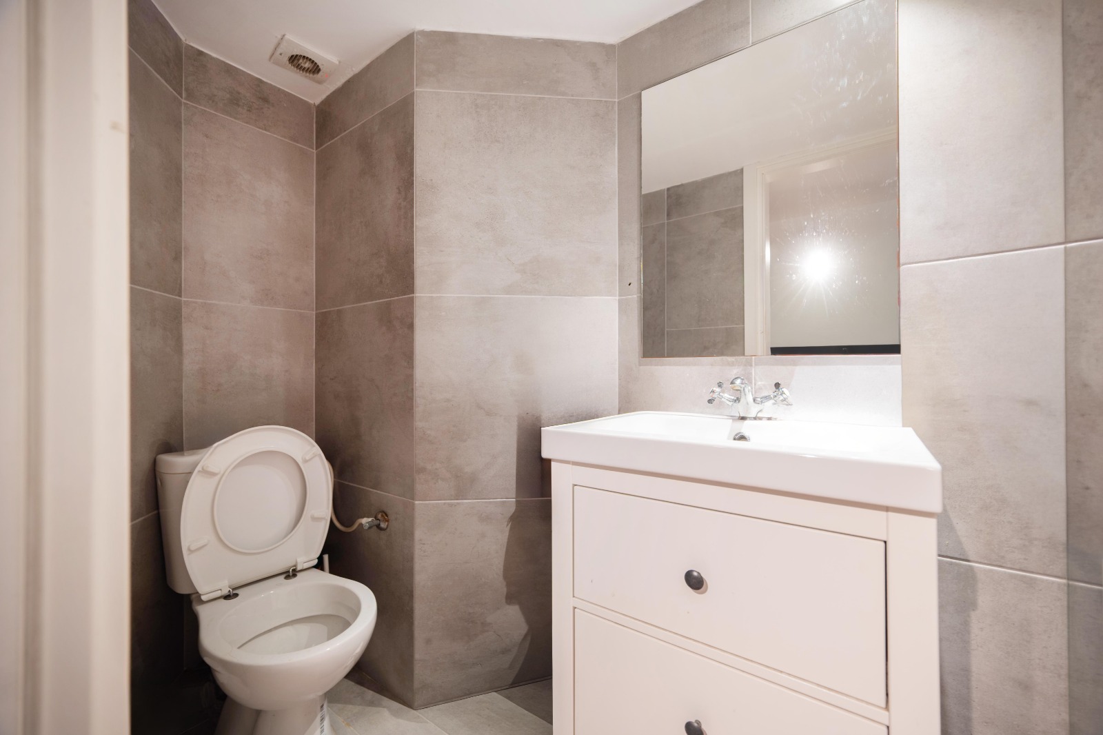 Il comprend deux salles de bains et deux toilettes. Un abri est disponible dans l’immeuble.