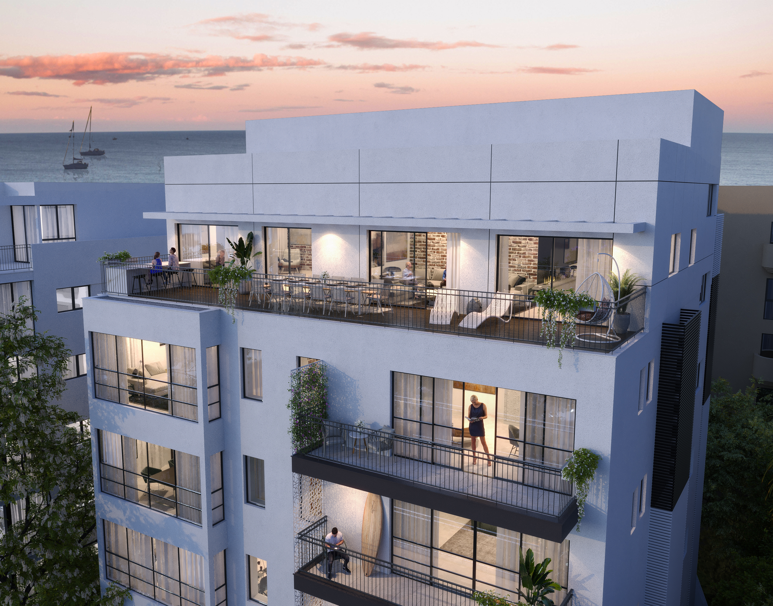 מול נמל תל אביב, במרחק הליכה מפארק הירקון ומטרים ספורים מרצועת החוף הקסומה בישראל, מוקם פרויקט מגורים אינטימי שמציע דירות שלושה חדרים עם מרפסות שמש, ושני פנטהאוזים יוקרתיים. בואו לחיות את החלום. ריצת בוקר בפארק הקסום, פיקניק למרגלות הנחל, ספורט ימי ובילוי בנמל או בצפון דיזינגוף השוקק והכל הכי קרוב שאפשר.