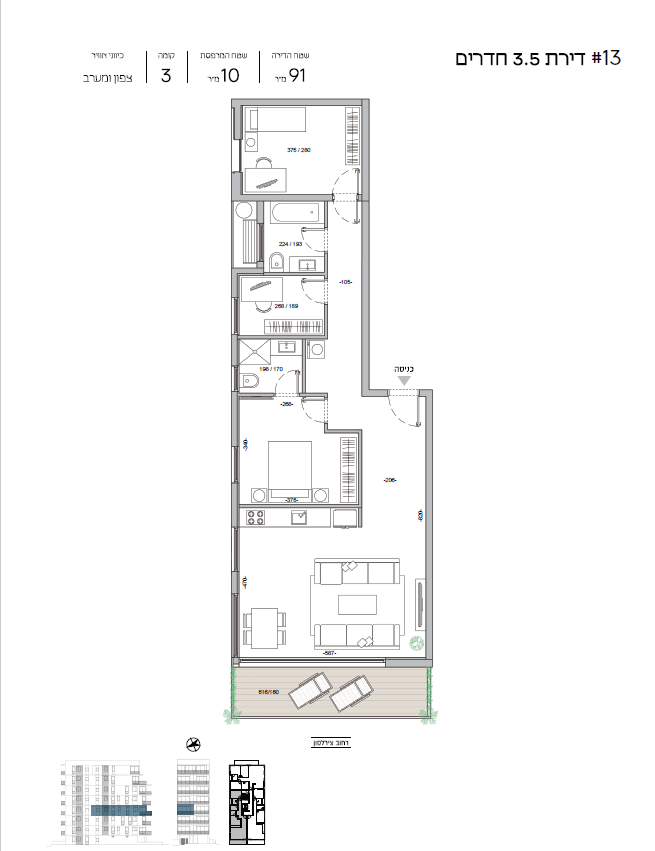 בפרויקט חדש הממוקם ברחוב חד סיטרי ושקט, סמוך לפארק הירקון ורחוב יהודה המכבי, בקומה שלישית דירת 3.5 חד' בשטח של כ 91 מ"ר + 10 מ"ר מרפסת שמש וחניה תת קרקעית.