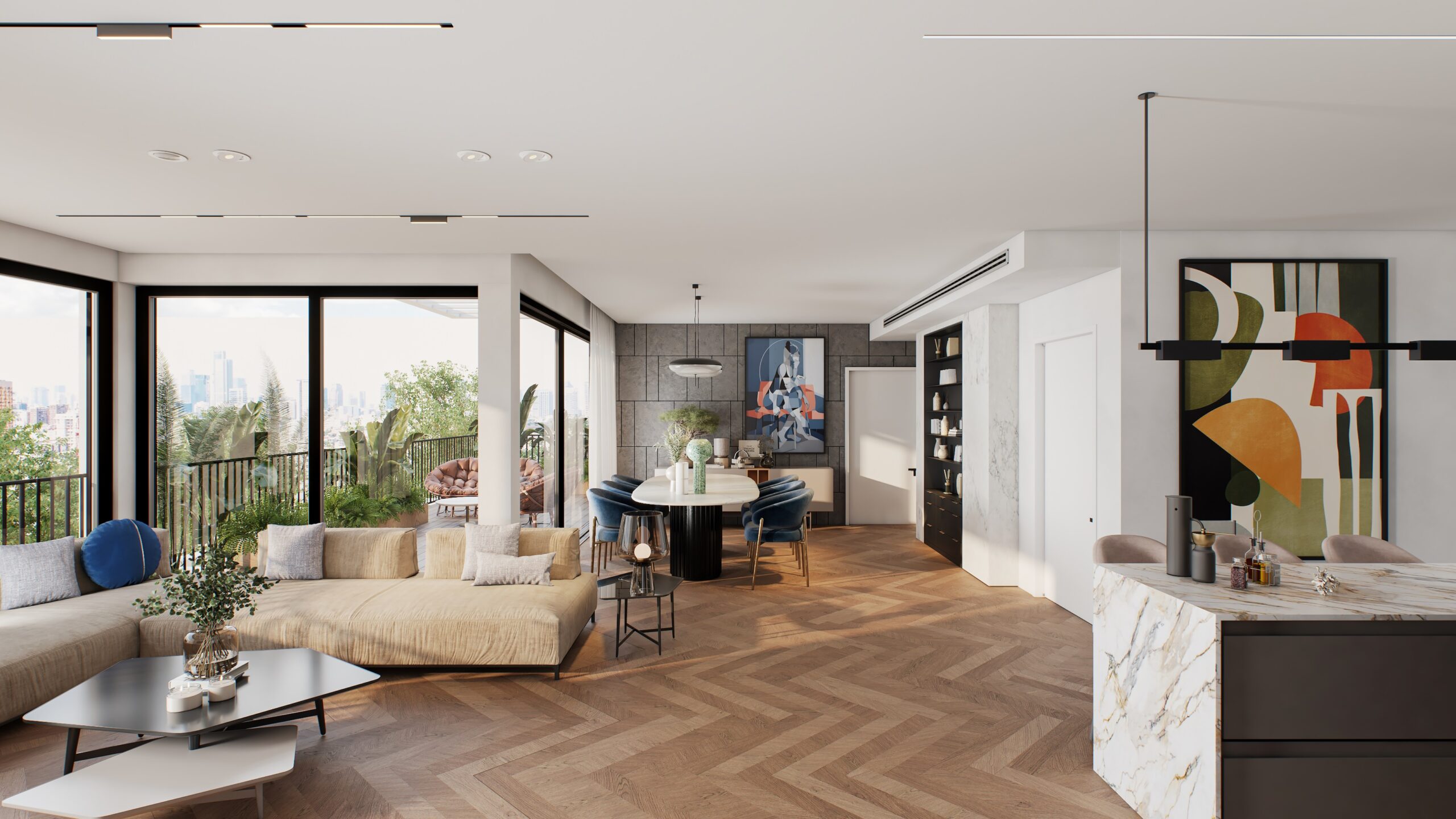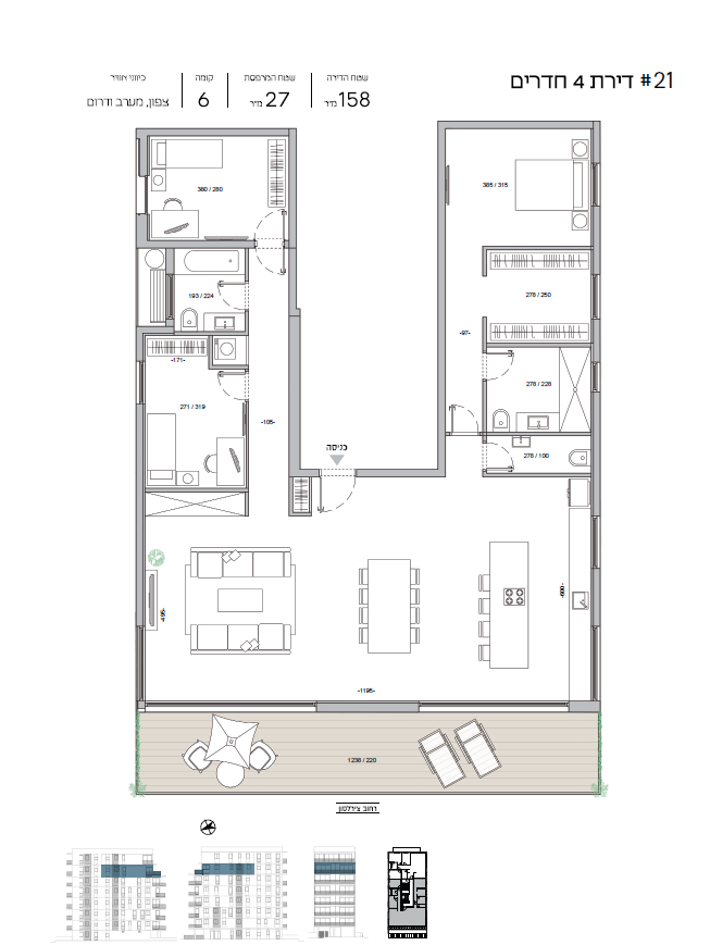 בפרויקט חדש ברחוב חד-סיטרי ושקט, סמוך לפארק הירקון ולרחוב יהודה המכבי, מוצעת למכירה דירת מיני פנטהאוז עם נוף פתוח. מתוכננת כ 4.5 חדרים בשטח של כ 158 מ"ר בנוי + מרפסת שמש בשטח של 27 מ"ר היוצאת מחלל הסלון המואר. שתי חניות תת-קרקעיות רגילות.