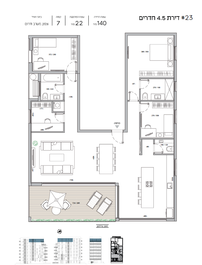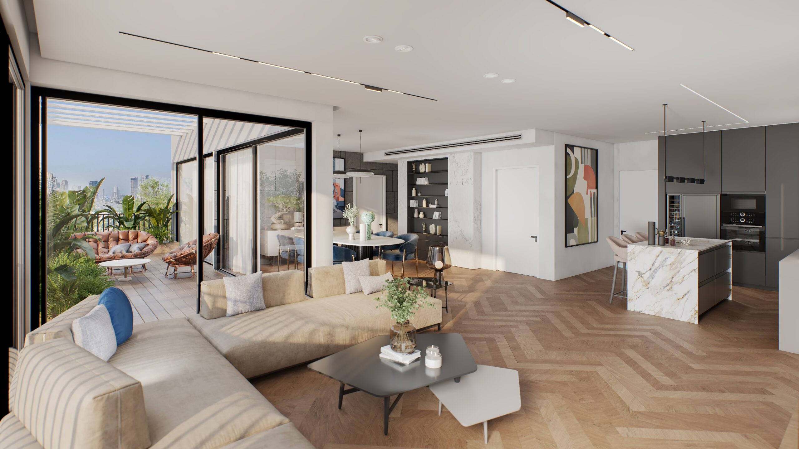 בפרויקט חדש ברחוב חד-סיטרי ושקט, סמוך לפארק הירקון ולרחוב יהודה המכבי, מוצע פנטהאוז מרהיב על כל חזית הבניין, עם נוף פתוח לעיר מהקומה השביעית. מתוכננת כ 4.5 חדרים בשטח של כ 141 מ"ר בנוי + מרפסת שמש בשטח של 22 מ"ר היוצאת מחלל הסלון המואר, ושתי חניות תת-קרקעיות רגילות.